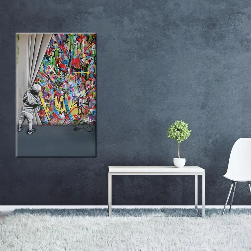 Vibrant Banksy Graffiti Canvas Print - Artistic Wall Decor
