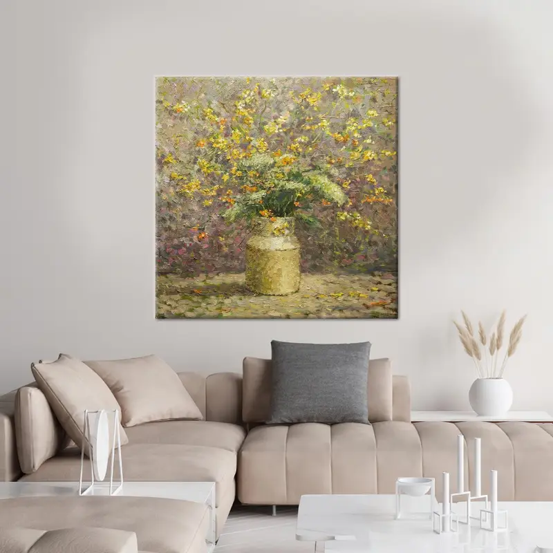 Vintage Floral Canvas: Abstract Yellow Flowers Art Print