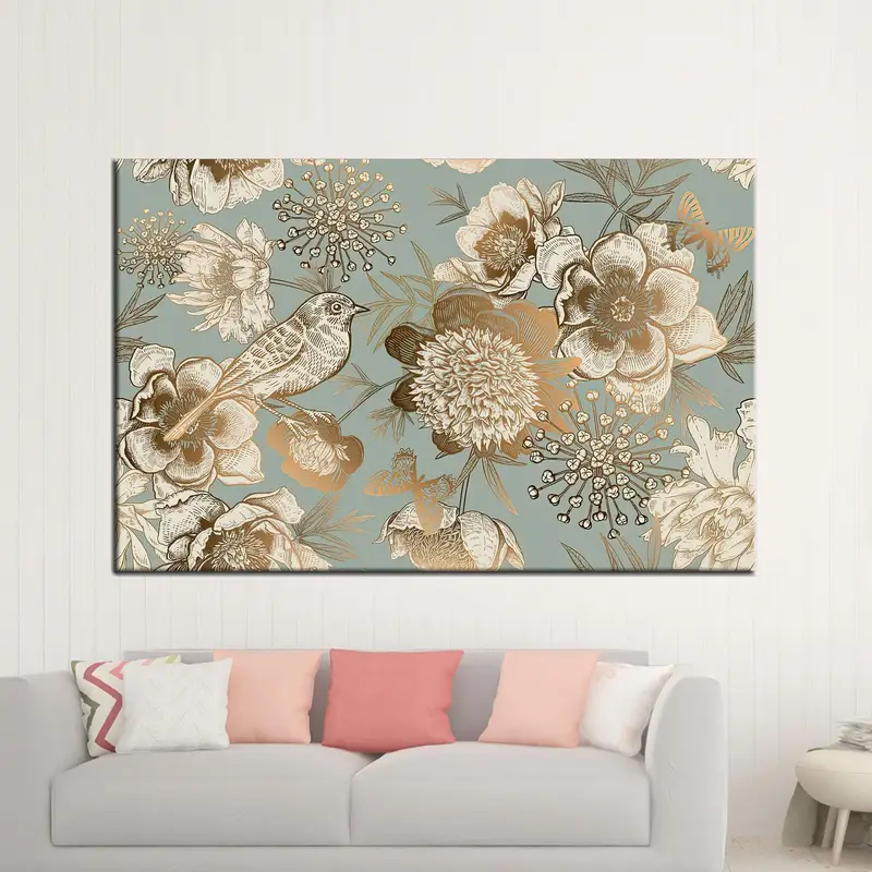 Golden Butterfly Canvas: Vintage Luxury Floral Art Print