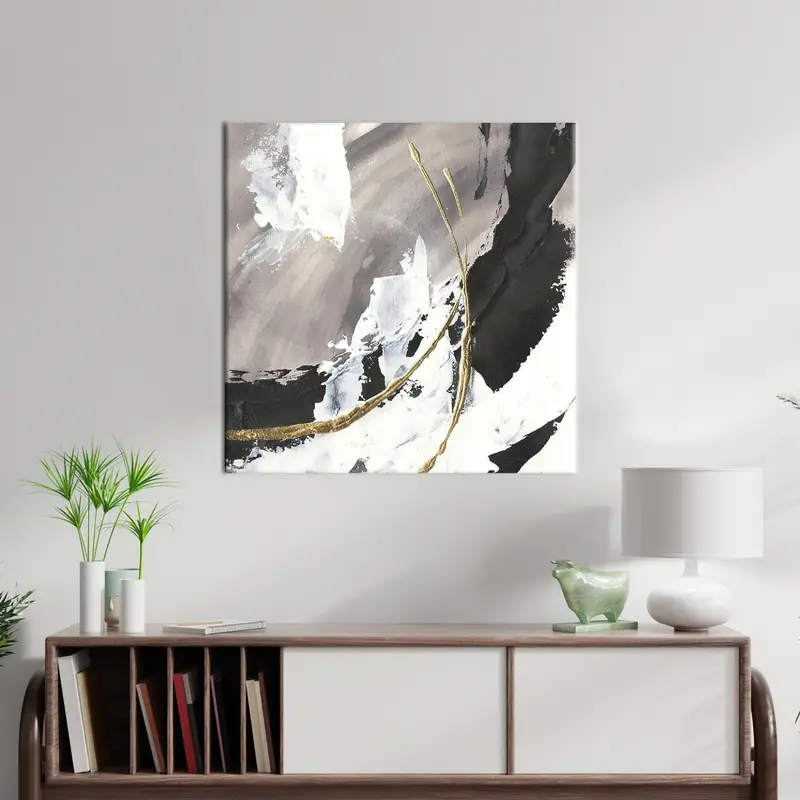 Contemporary Gold & Black Shimmery Printed Canvas Art