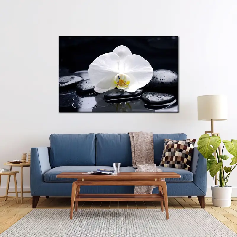 Elegant Orchid Spa Stones Canvas Print - Unique Gift for Orchid Lovers