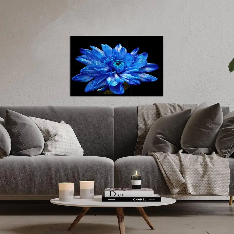 Modern Luxury Blue Flower Black Printed Canvas Art