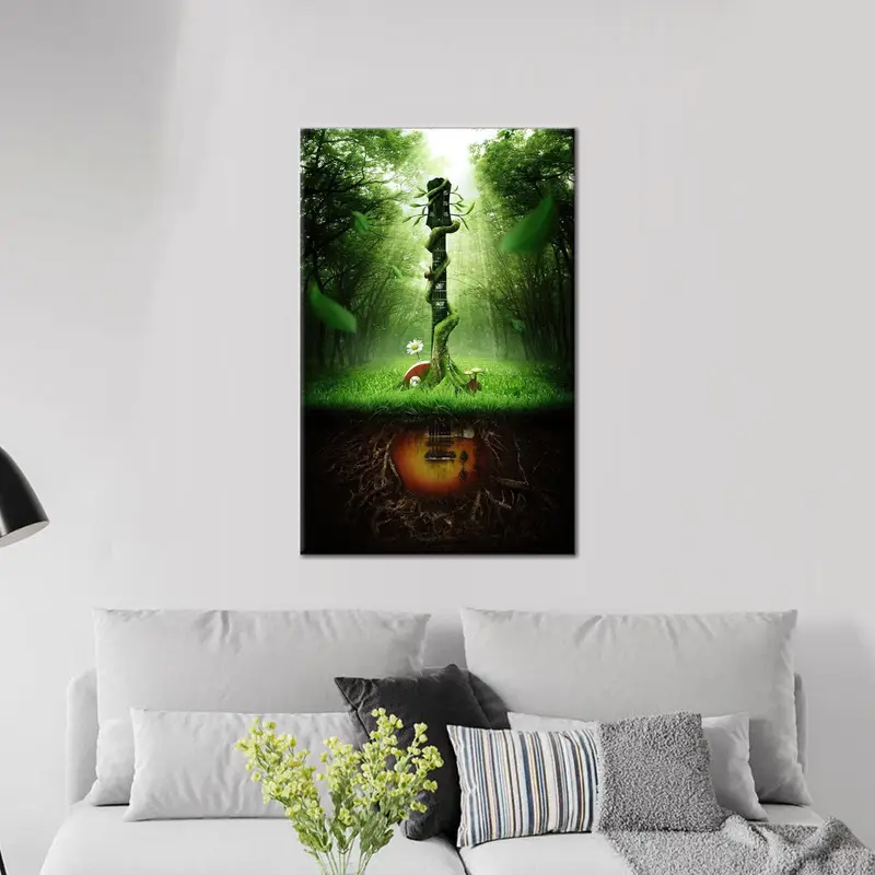 Abstract Guitar Green Surreal Trendy Printed Canvas Art