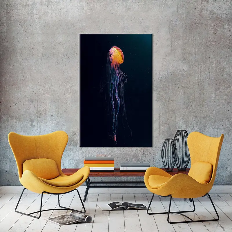 Vibrant Orange Jellyfish Underwater Scene Printed Canvas Art