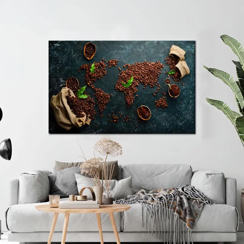 Artistic World Map Coffee Canvas: Elegant Kitchen Decor