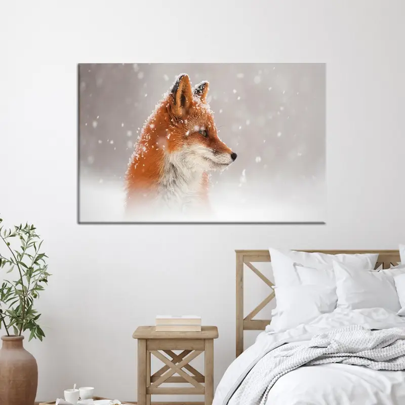 Trendy Cute Fox Canvas: Winter Landscape Art Print