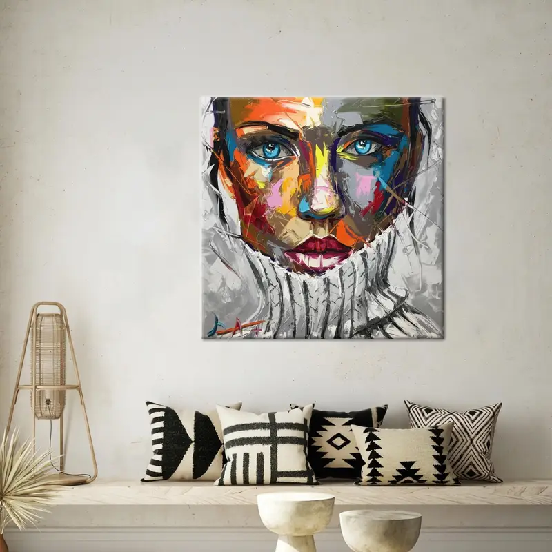 Elegant Colorful Woman Abstract Canvas for Trendy Girl Room