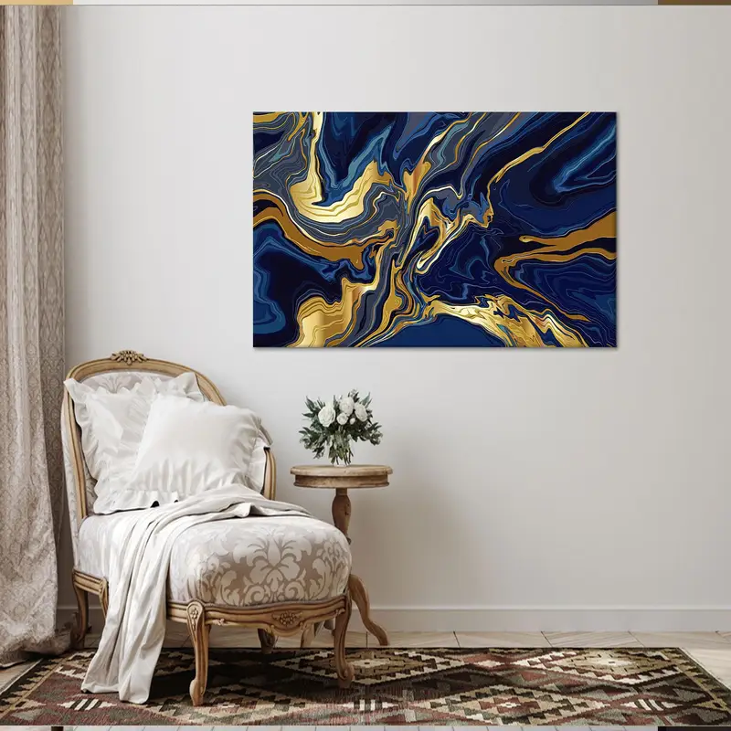 Navy Blue Shimmery Gold Marble Abstract Canvas Print