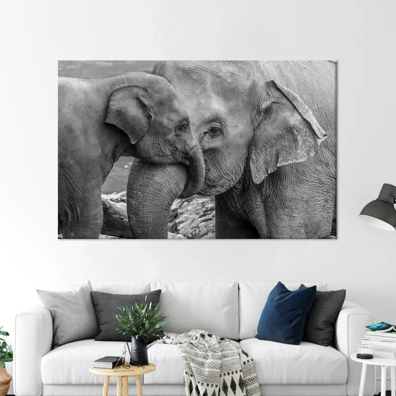 Modern Elephant Canvas: Black & White Farmhouse Art Print