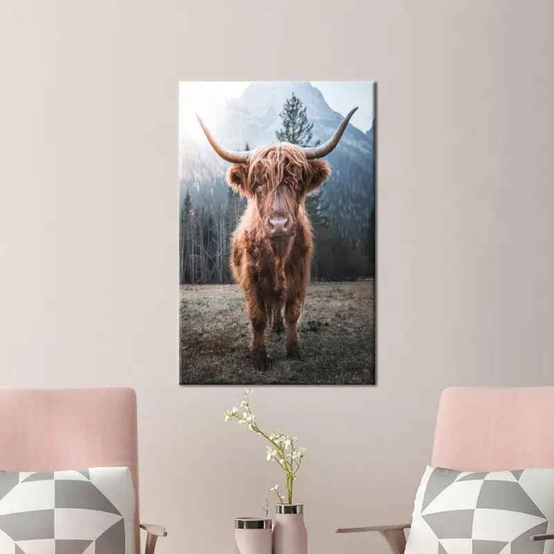 Trendy Brown Cow Farmhouse Canvas Print for Loft Decor