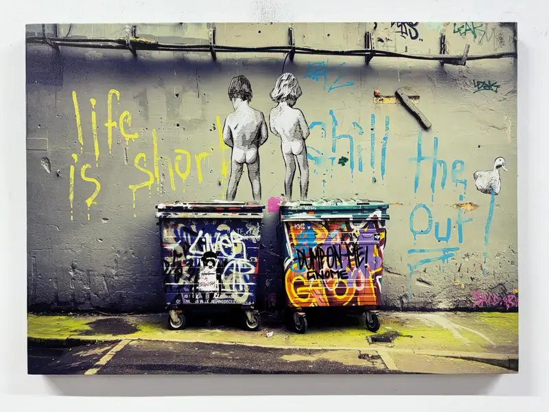 Canvas Print: Banksy's Life is Short, Peeing Boys Art