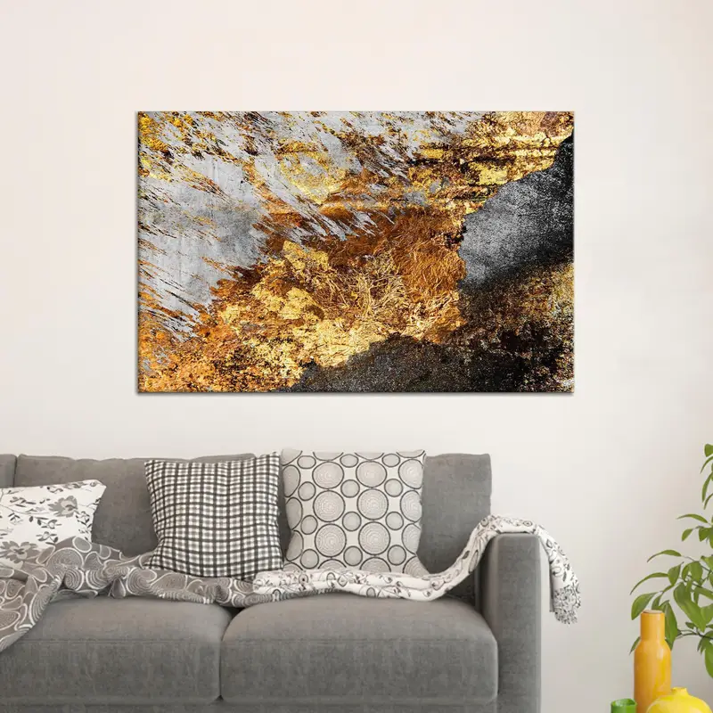 Contemporary Gold Abstract Art: Printed Canvas in Modern Black Frame