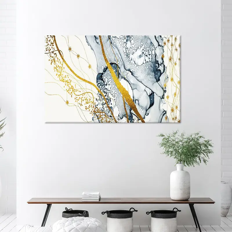 Elegant Gold Marble Printed Canvas: Contemporary Luxury Decor
