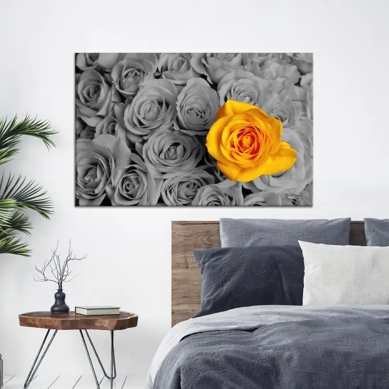 Modern Vogue: Elegant Yellow & Rose Printed Canvas Art