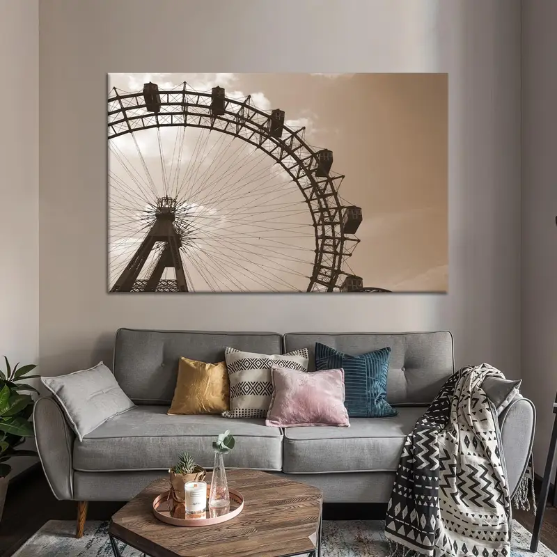 Modern Park Landscape Canvas: Ferris Wheel Office Art Print