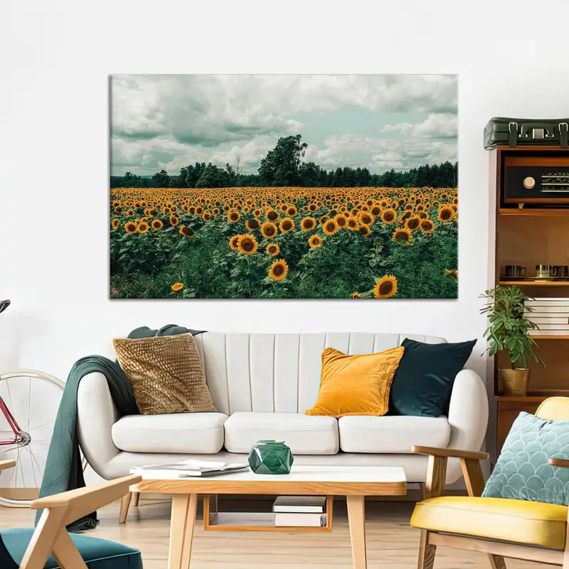 Modern Sunflower Field Landscape Printed Canvas for Trendy Kitchen Decor
