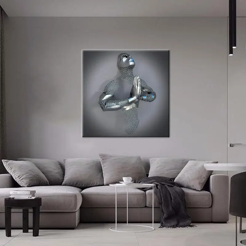 Trendy 3D Human Silver Canvas Print - Elegant Wall Art