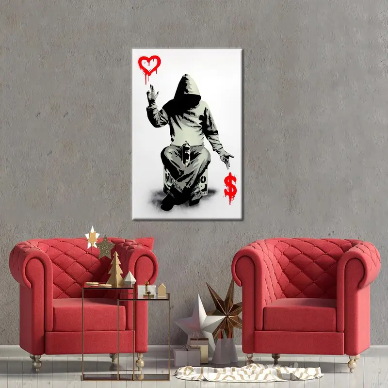 Elegant Banksy Canvas: Money, Boy, Heart - Printed Art