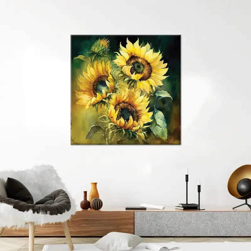Modern Sunflower Yellow Abstract Printed Canvas Art