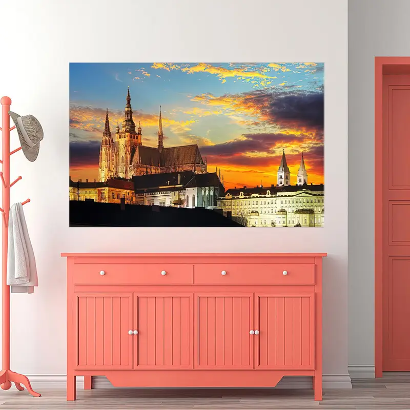 Enchanting Prague Sunset Landscape Printed Canvas - Vibrant Cityscape