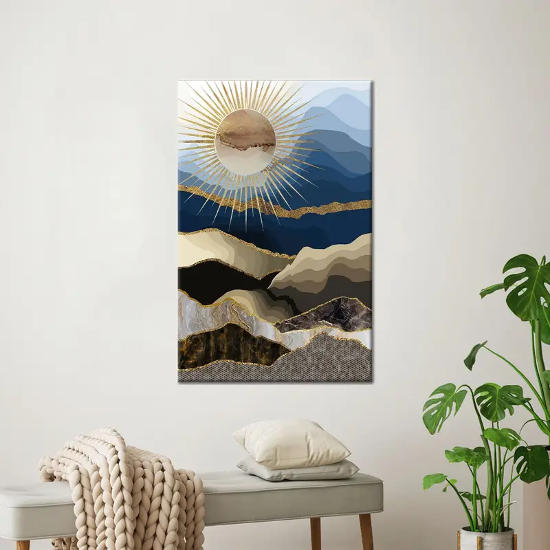 Shimmering Sun Mountain View Printed Canvas - Modern Abstract Art