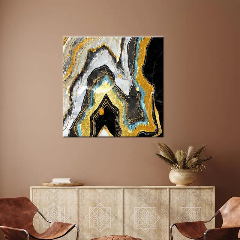Elegant Gold Marble Printed Canvas: Luxury Shimmery Decor