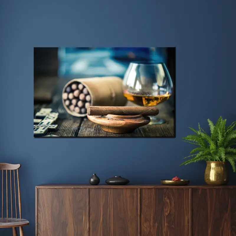 Elegant Cigar Cafe Canvas: Printed Art for Your Man Cave