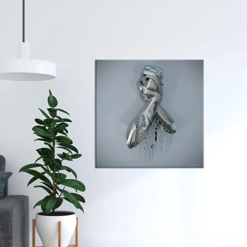 Contemporary Metallic Hand Printed Canvas with Trendy 3D Effect