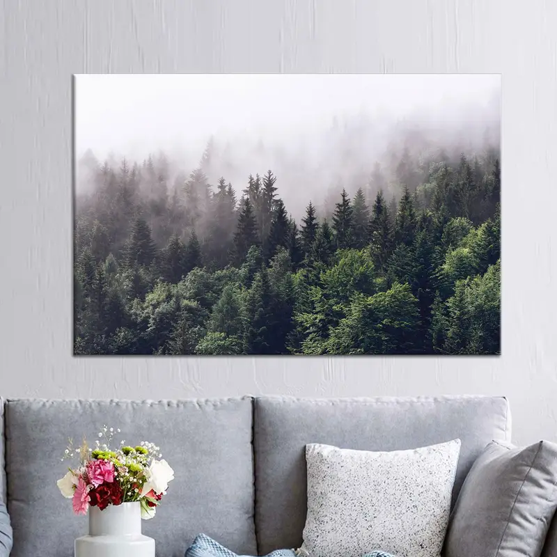 Scenic Misty Mountain Forest Landscape Printed Canvas Art