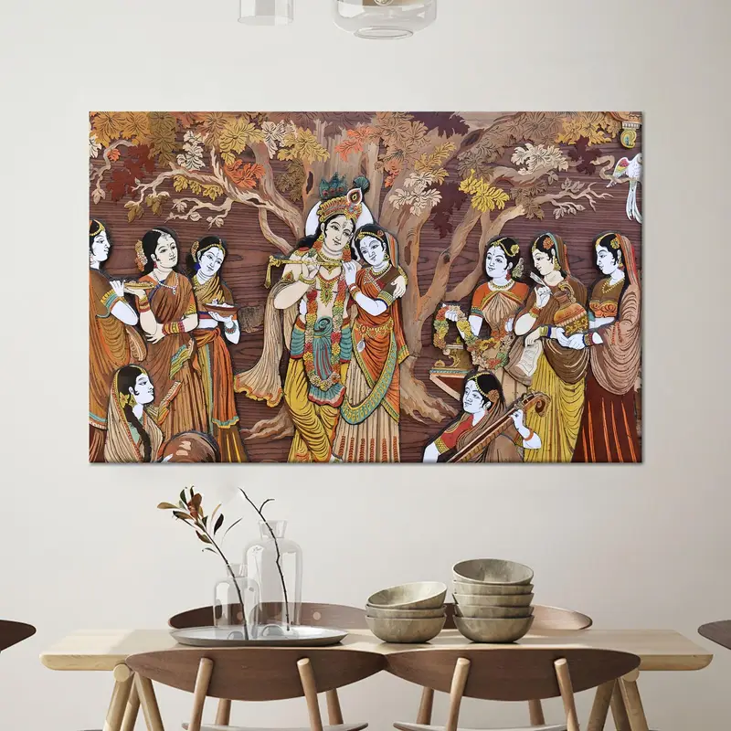 Sacred Radha Krishna Canvas: Divine Hindu Art Print