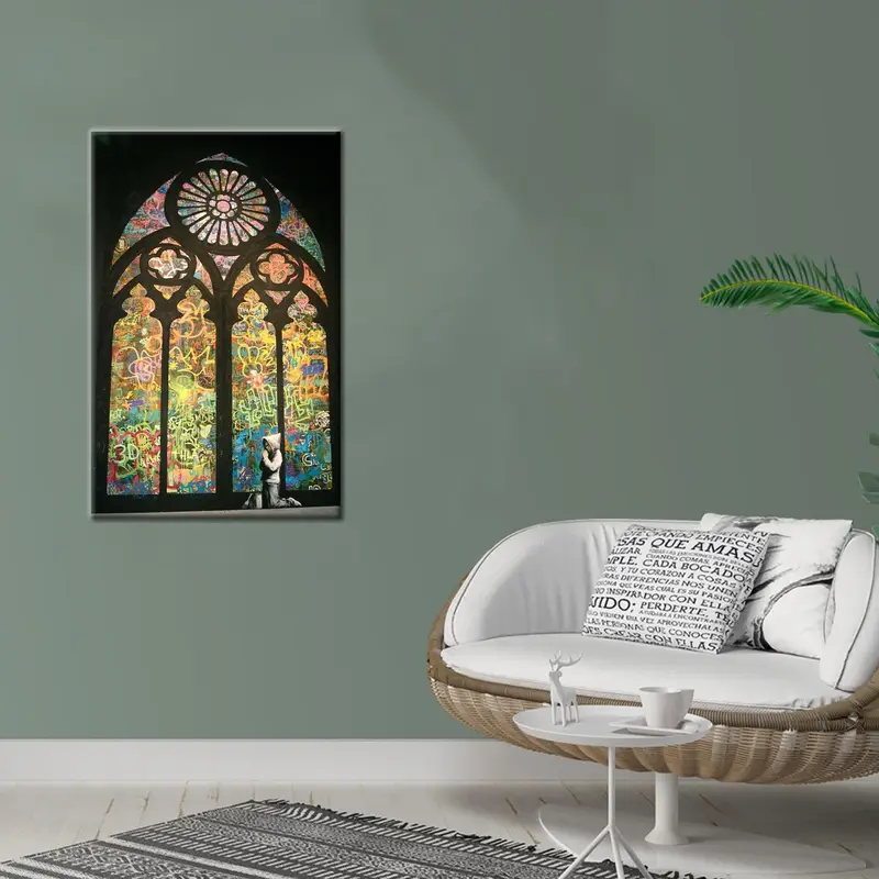 Elegant Bansky Boy Graffiti Canvas Art Print