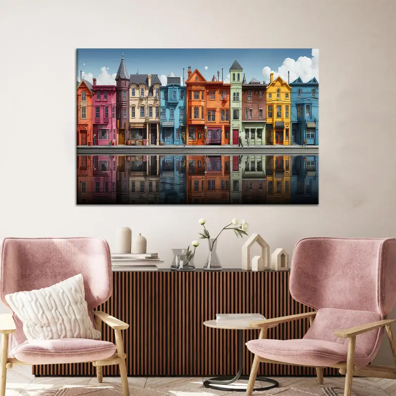 Elegant Colorful City Canvas: Vibrant Urban Art Print