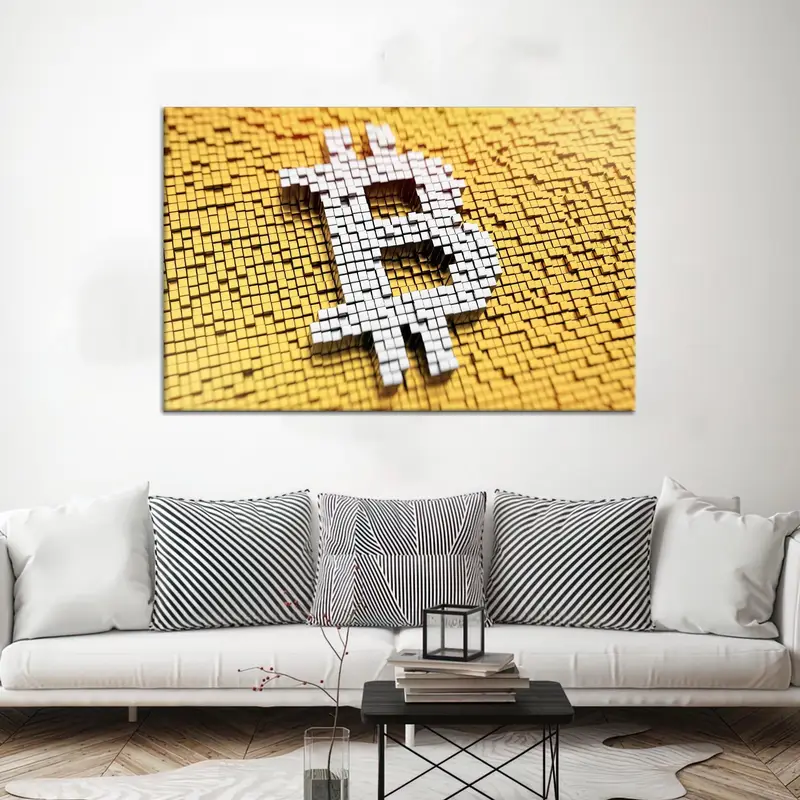 Trendy Yellow Crypto Canvas: Artistic Bitcoin Trade Print