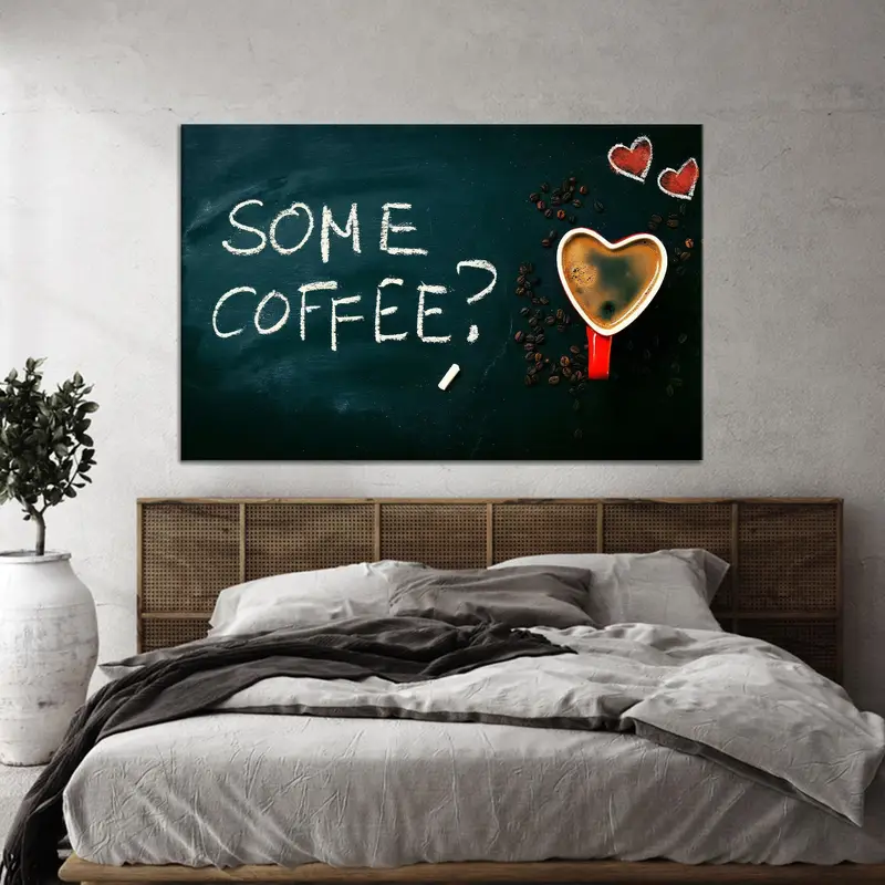 Elegant Coffee Shop Heart Canvas Print - Artistic Kitchen Decor