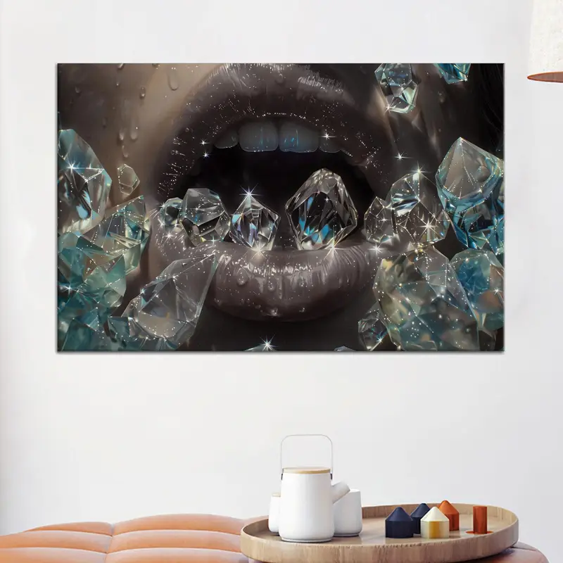 Artistic Mouth Abstract Diamonds Diamond Design Printed Canvas