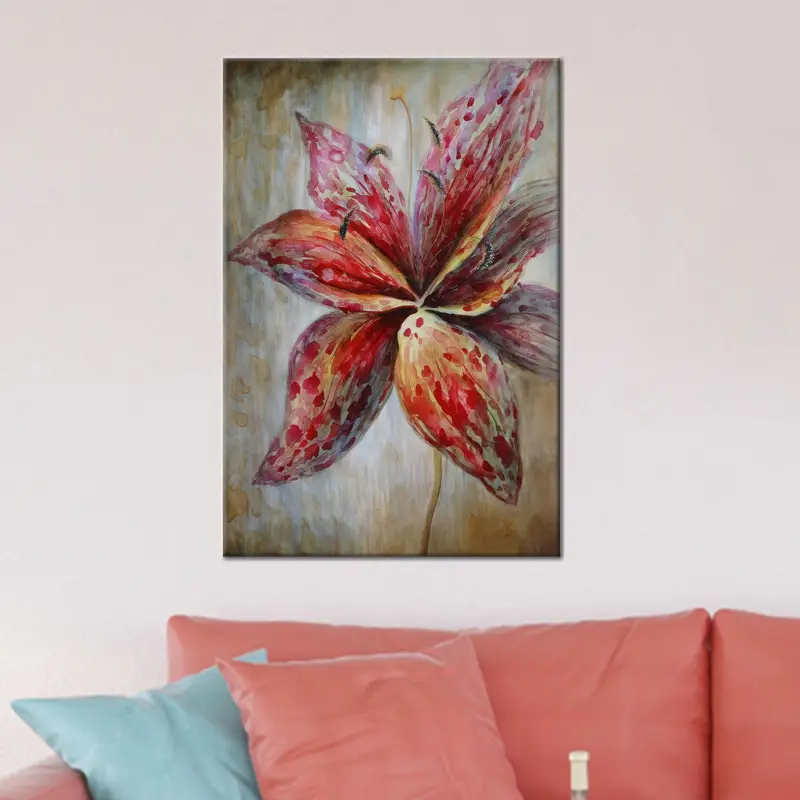 Modern Lily Red Flower Abstract Canvas Print for Kitchen