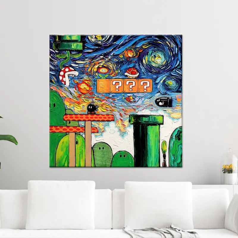 Super Mario World Starry Night Canvas Print - Gaming Room Art