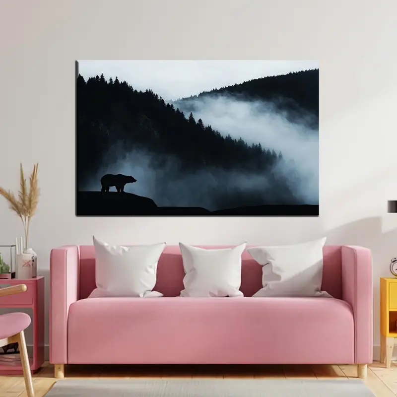 Elegant Canvas: Wild Landscape Bear Silhouette Misty Mountains