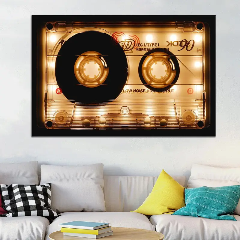 Vintage Music Canvas: Retro Cassette Art Print for Home