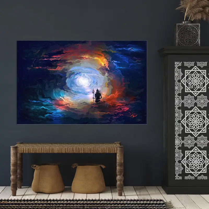 Elegant Abstract Shiva Canvas: Hinduism Art Print
