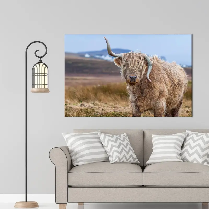 Elegant Highland Cow Canvas: Coastal Farmhouse Wall Art
