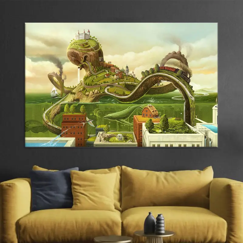 Abstract Green Octopus Surreal Underwater World Printed Canvas