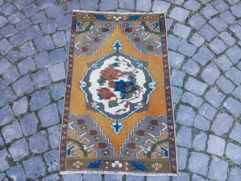 Vibrant Orange Rug, 1.83x3 ft Blue Accent
