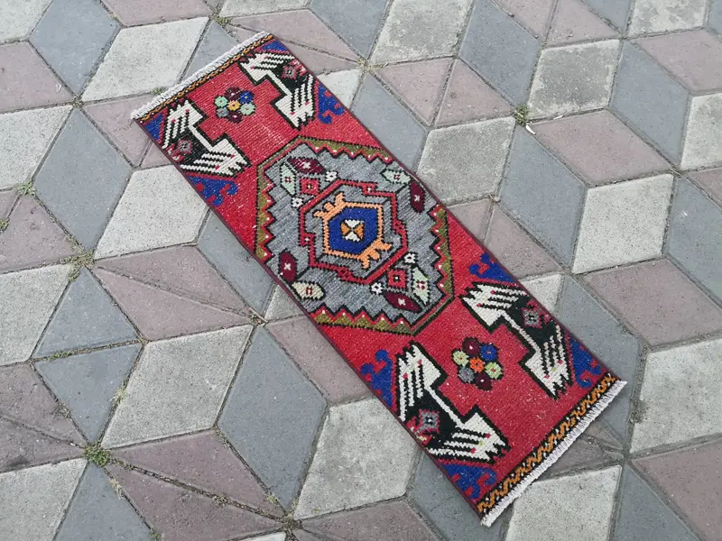 Red and Blue Rug, 1,08x3,17 ft Elegant Decor