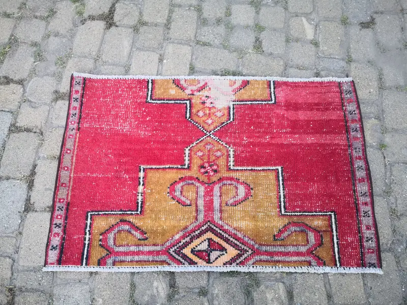 Red Oriental Rug, 2,08x3,33 ft Elegant Gray Accent