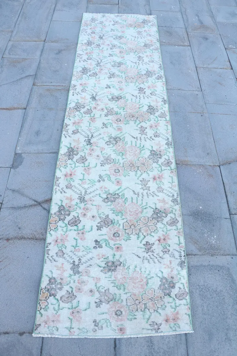 Elegant Beige Rug, 2,23x8,5 ft Floral & Geometric Design