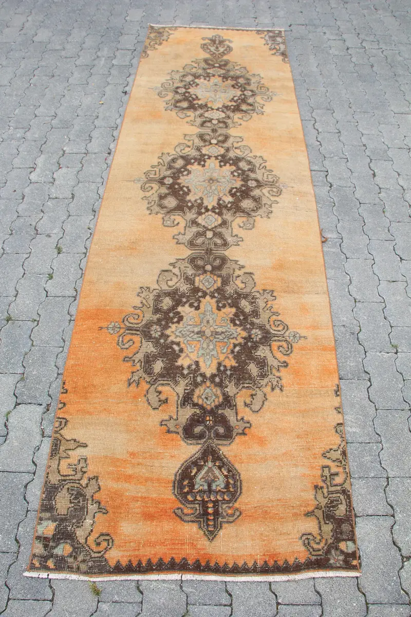 Orange Floral Rug, 2,8x10,3 ft Elegant Decor