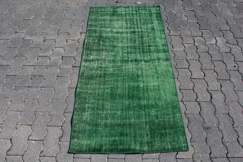 Green Geometric Rug, 2,5x5,2 ft Elegant Floral Design
