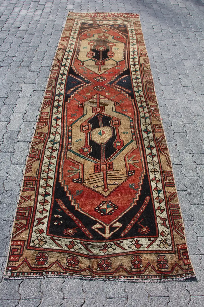 Brown & Blue Patchwork Rug, 3,3x11,5 ft Chic Decor
