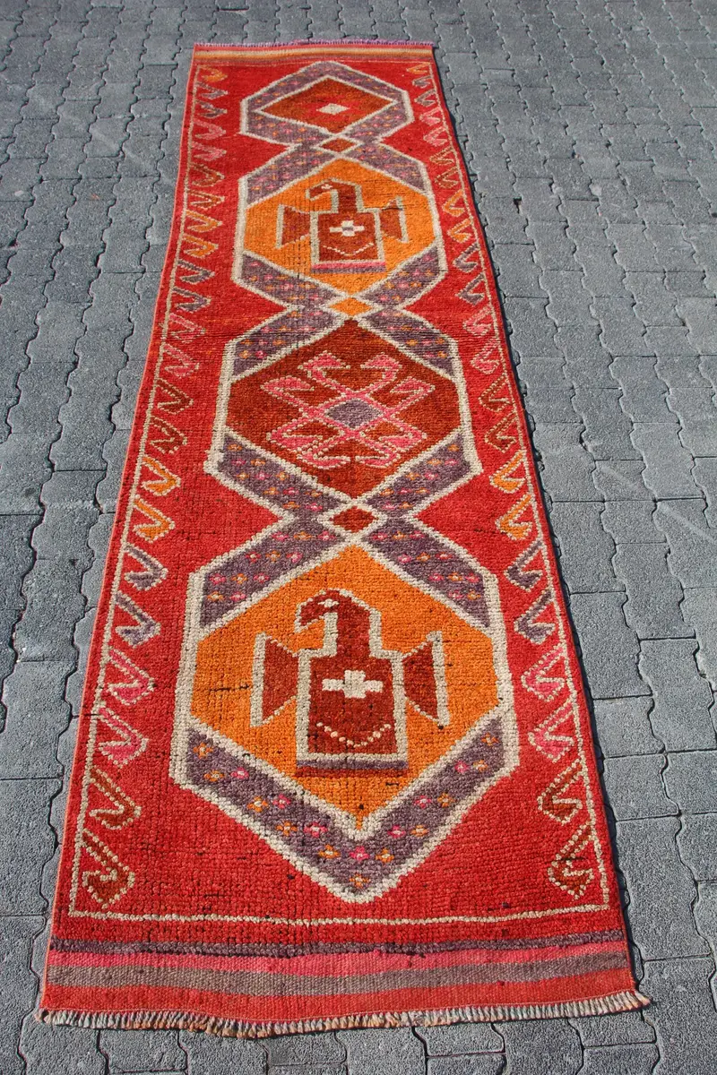 Red and Orange Rug, 2,8x9,3 ft Bordered Design